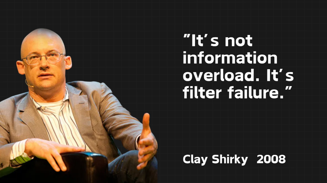 这个观点其实不是我的,是克莱·舍基在很久以前就说过的,“It’s not information overload. It’s filter failure.”