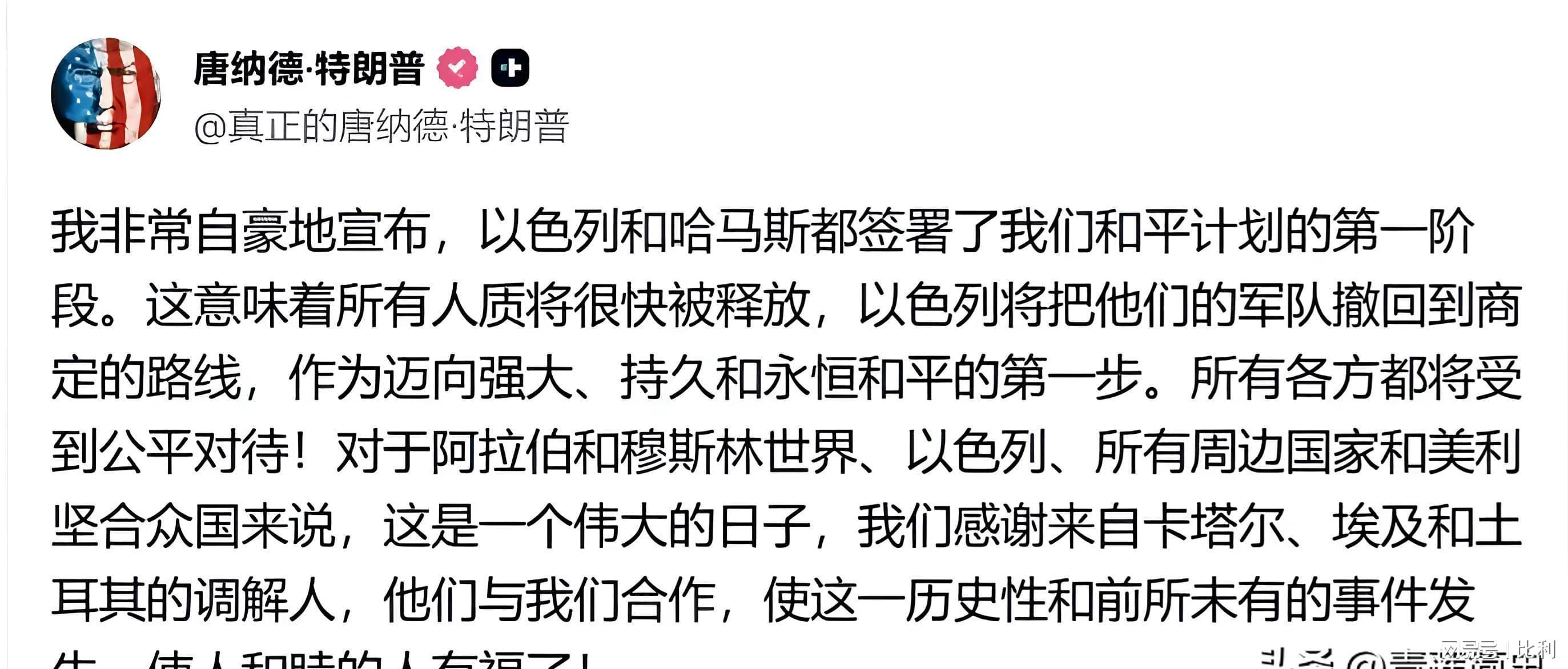 10月9日,哈马斯与以色列达成第一阶段停火协议,标志着哈马斯投降已成既定事实。根据协议,哈马斯将释放人质,以色列则停火并撤军。特朗普第一时间宣布了这一“好消息”,而按照“20点和平计划”,哈马斯在释放人质和以色列撤军后,还将在第二阶段交出武器和权力,这意味着哈马斯或将退出历史舞台。