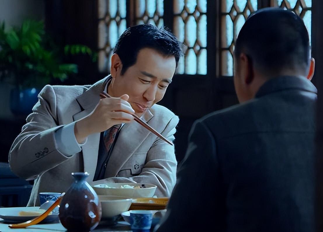 为获取轰炸情报请小舅子吃饭的戏份中,表面专注干饭的吴石实则全神贯注。筷子翻来覆去夹菜,实际送入口中的只有几口,眼神轻瞥间充满谋算与试探,将情报人员的谨慎展现得淋漓尽致。