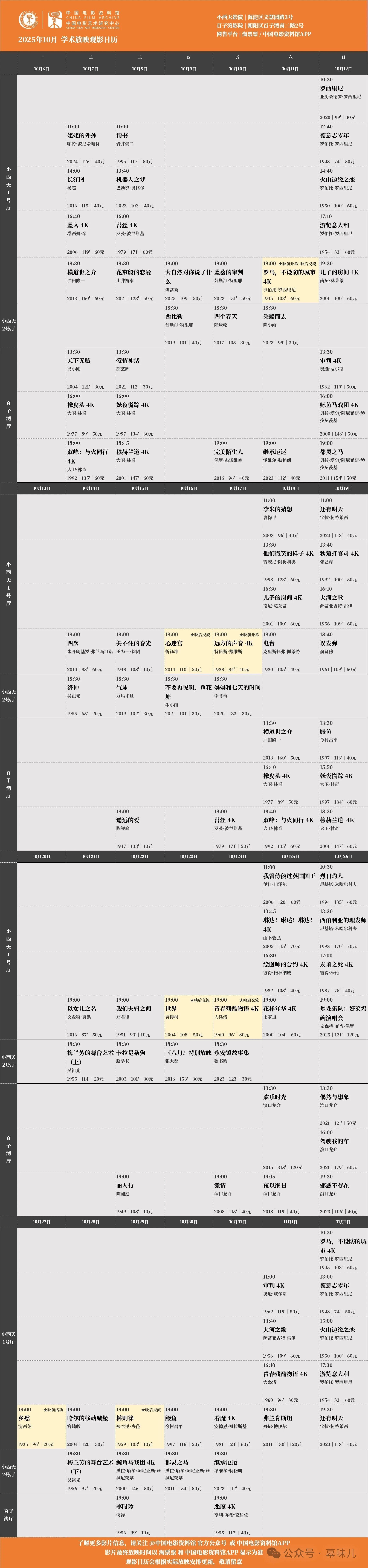 所有场次均可在淘票票、中国电影资料馆APP购票,具体排片信息请见末图。祝您观影愉快!❤️