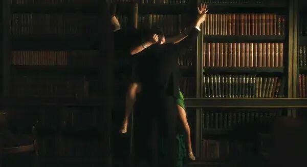 晚宴前,布莱奥妮在走廊捡到姐姐的耳环,顺着书房透出的光,她看到了终生难忘的画面:塞西莉亚的绿色长裙与罗比的衬衫纠缠在一起,书架上的书籍因剧烈晃动而坠落。昏黄的灯光下,两人的喘息声与布料摩擦声交织成暧昧的乐章。这个场景在布莱奥妮的想象中扭曲成“侵犯”,而当表姐在树林中遭遇袭击时,她毫不犹豫地将罪名扣在罗比头上。