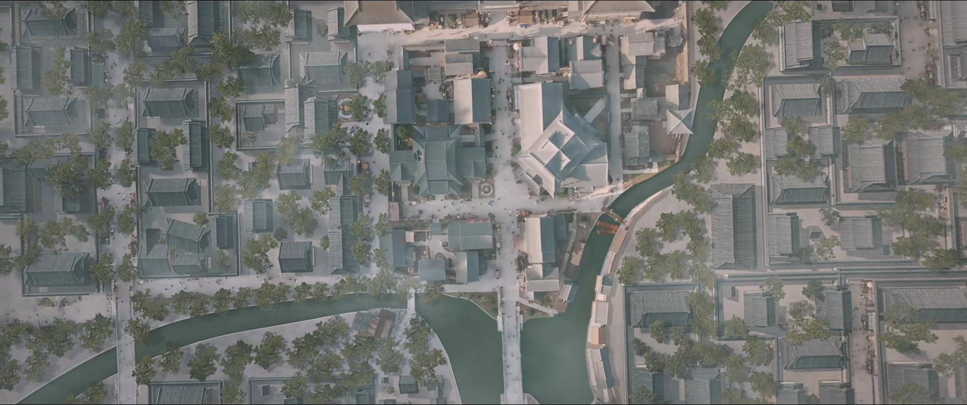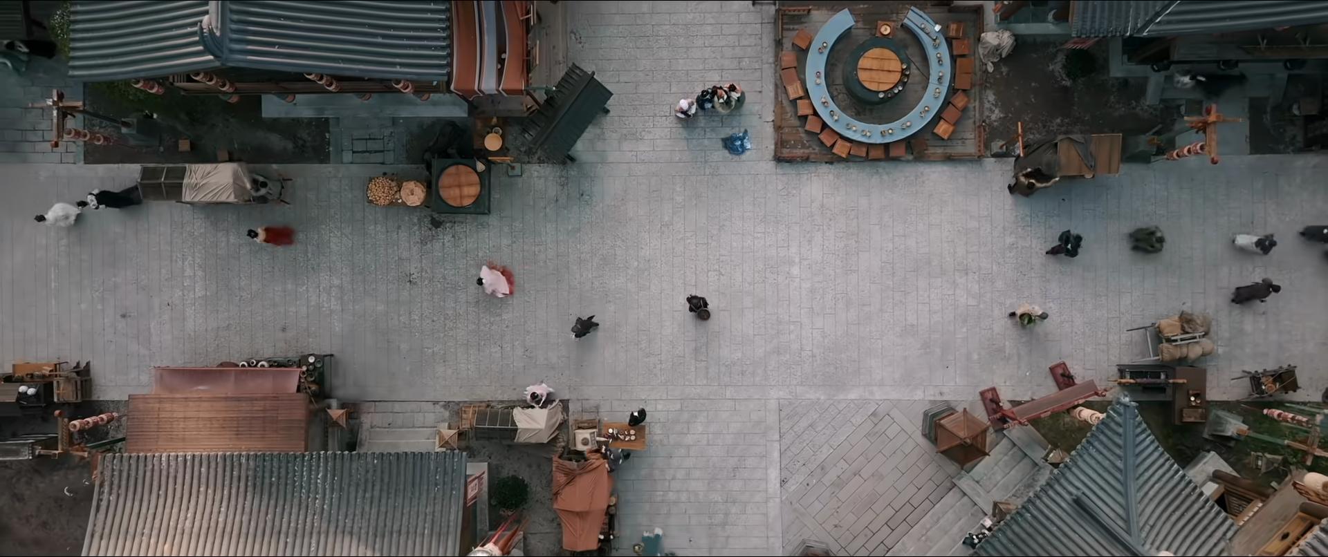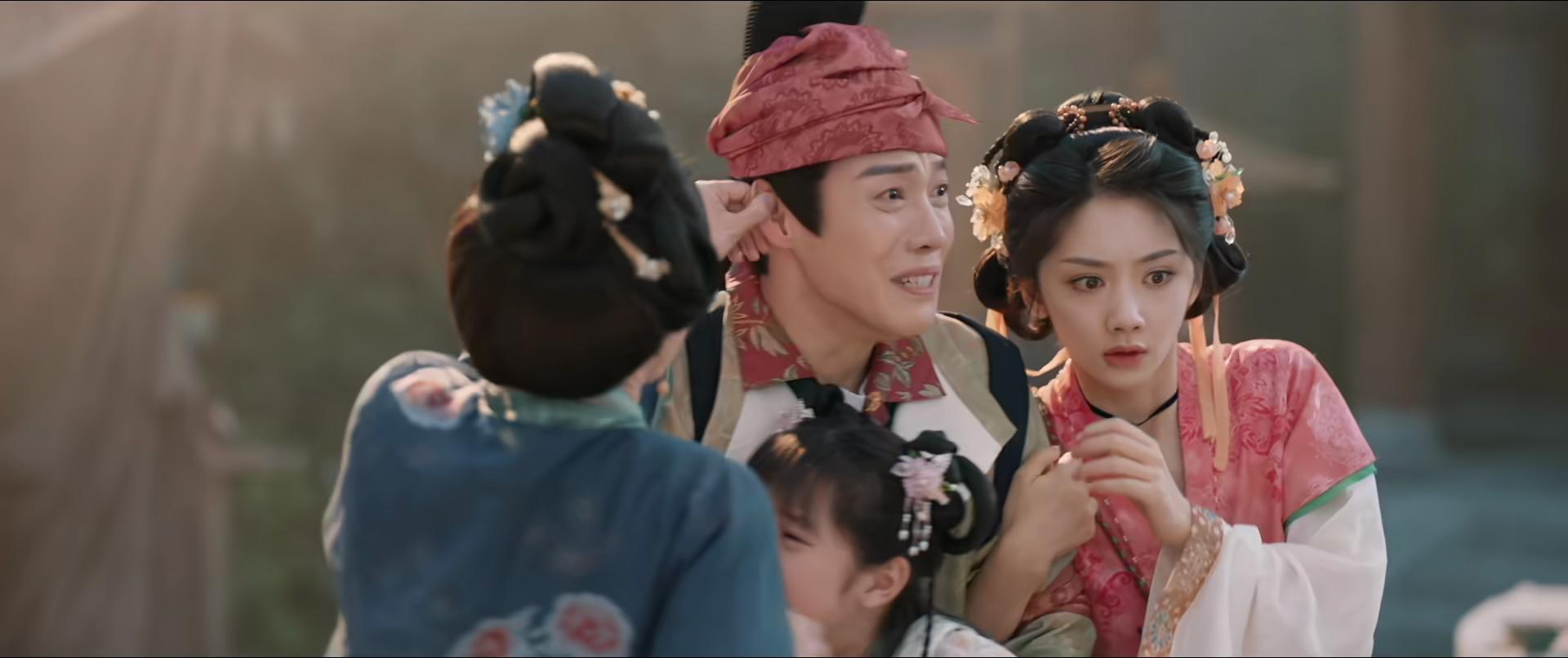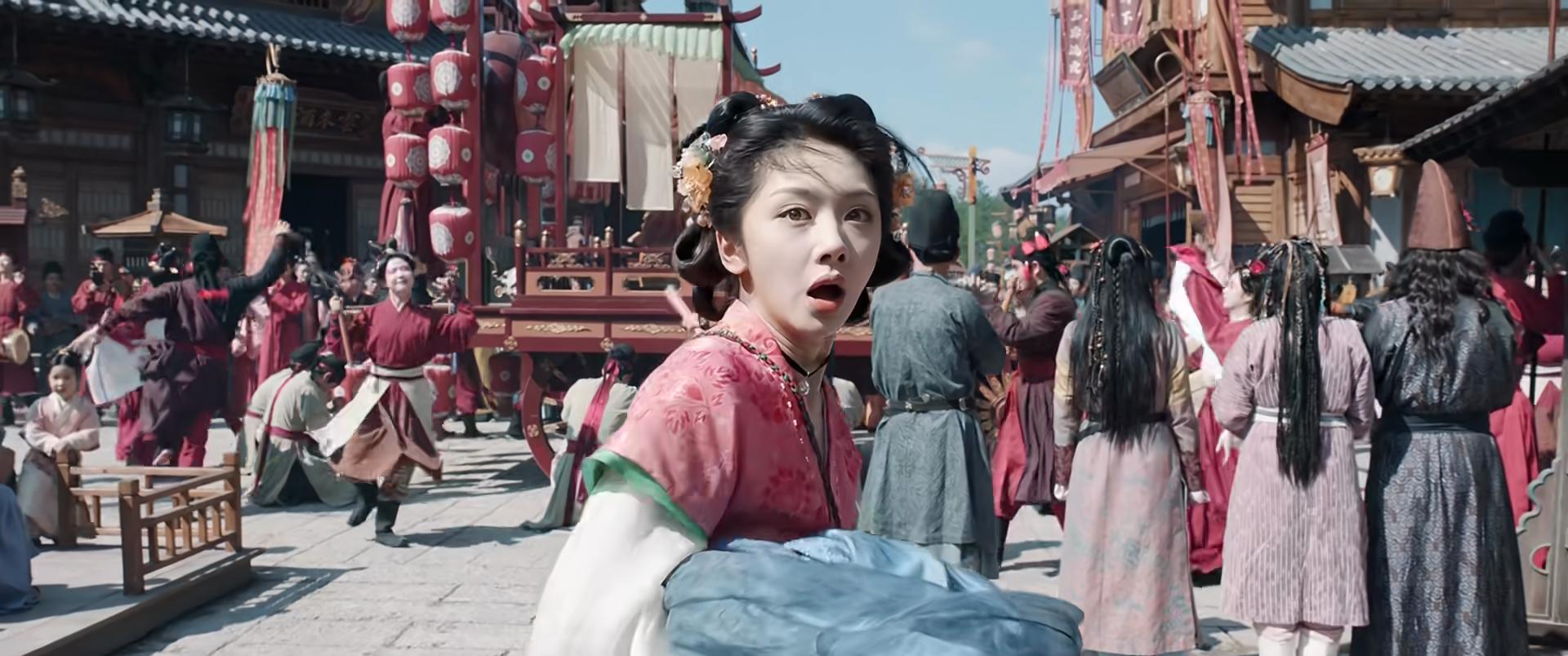 下一秒,身着古装造型的他们忽然来到全员古装的热闹市集。