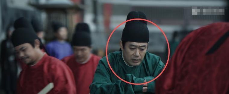 背景中的其他官员肤色健康偏黄褐,唯独他面色惨淡,像是从另一个调色盘里抠出来的。