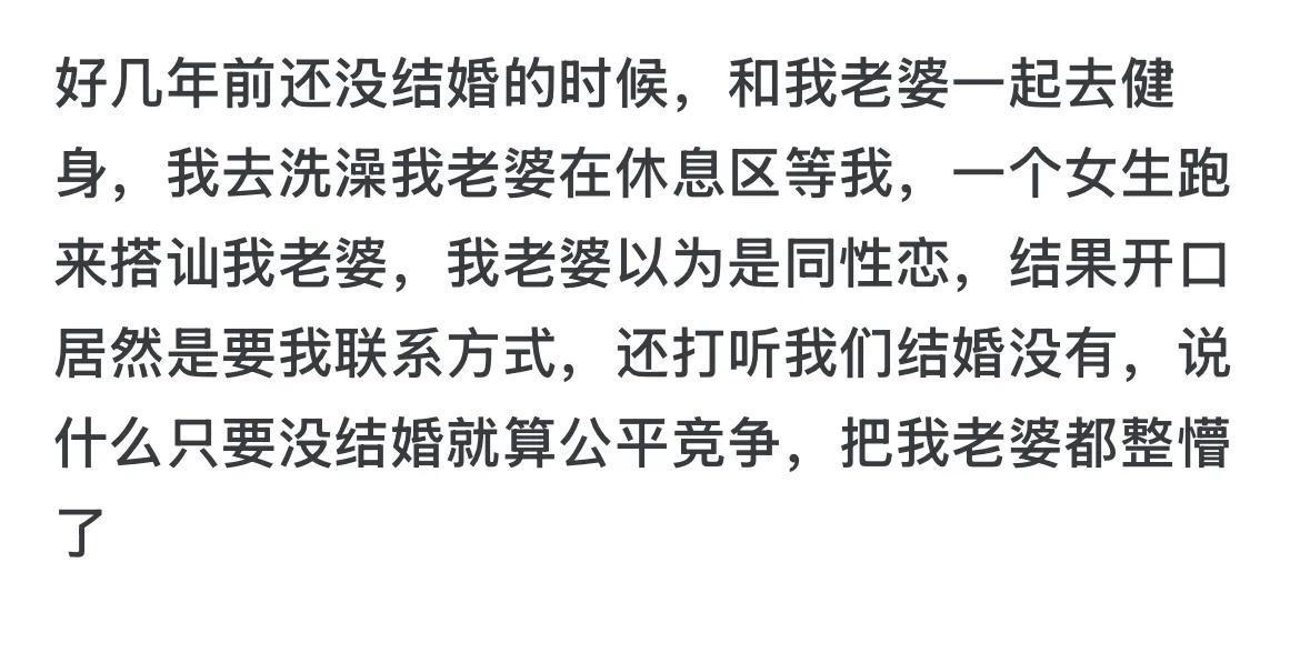 某男性网友分享尴尬经历:「健身时被年轻女孩索要微信,亮出婚戒后对方竟称『可以做朋友』。当对方追到器械区询问练臀技巧时,我吓得直接回家。现在小姑娘都这么主动吗?」