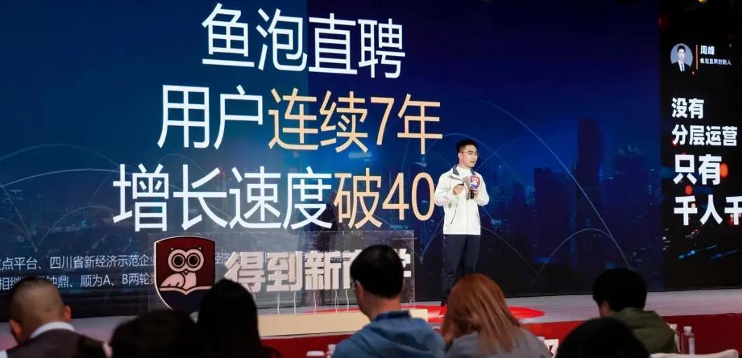 2022年底,鱼泡直聘完成了由顺为资本领投、钟鼎资本跟投的数亿元B 轮融资,估值40亿元。和顺为有关联的400多个CEO在同一个群里,周峰当时表示“受宠若惊”,“我和雷军、王兴兴在一个群里了,那个群太高端了,我都不好意思打广告”。