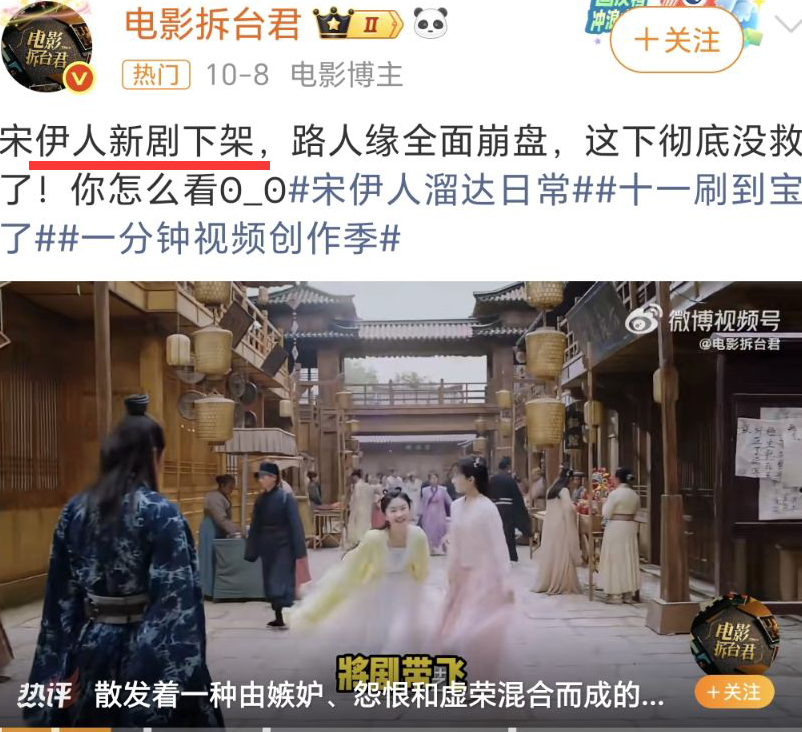 除了社交平台被围攻,一些谣言也时刻伴随着宋伊人。说她的新剧被下架了,和任豪搭档合作的《不遇云裳不遇你》。