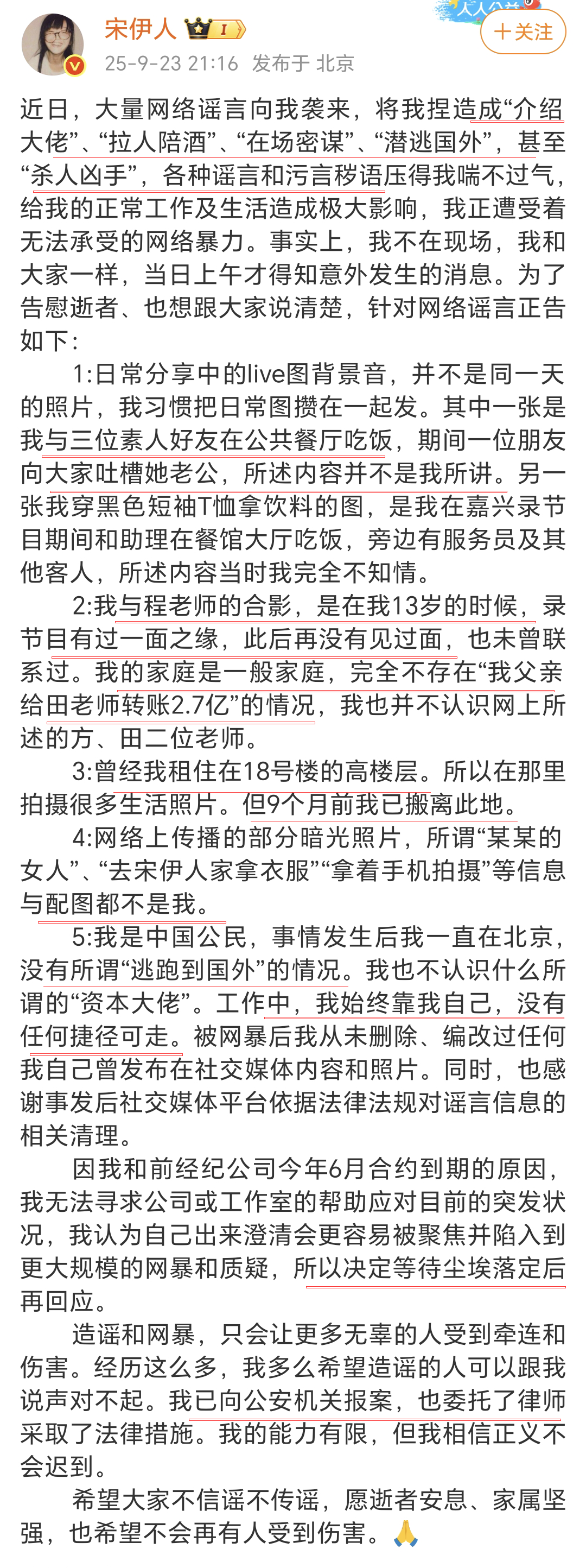 宋伊人澄清的尤其认真,针对传闻,几乎挨个回应了。