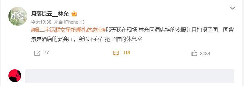 面对舆论压力,林允并未亲自回应,但其站姐挺身而出,表示当天活动林允是在酒店更换的衣服并拍摄的照片,并晒出了相关照片以证清白。