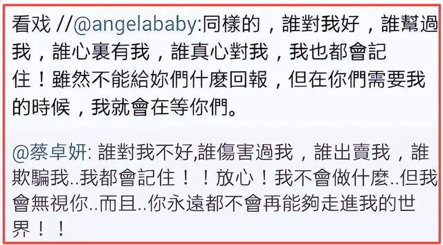 而阿Sa则暗讽Angelababy挖她墙角,她再也不会让对方融入她的圈子。
