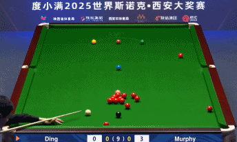 丁俊晖右底袋上手后,却离谱地出现了母球走位失误,导致母球靠近左边库,右侧红球受到牵制。他打黑球时出现失误,墨菲再次上手取胜。