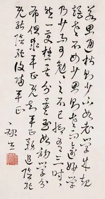 康生书法的惊艳之处,在于将章草的古朴与行书的流畅熔于一炉,形成独树一帜的“康体”。他临习《急就章》《月仪帖》等经典数十年,却从不泥古不化:写“捺画”时借鉴汉隶的波磔,起笔藏锋如蚕头,收笔出锋似燕尾;处理“连笔”时又暗含篆书笔意,线条圆劲如铁线,却无拖沓之感。