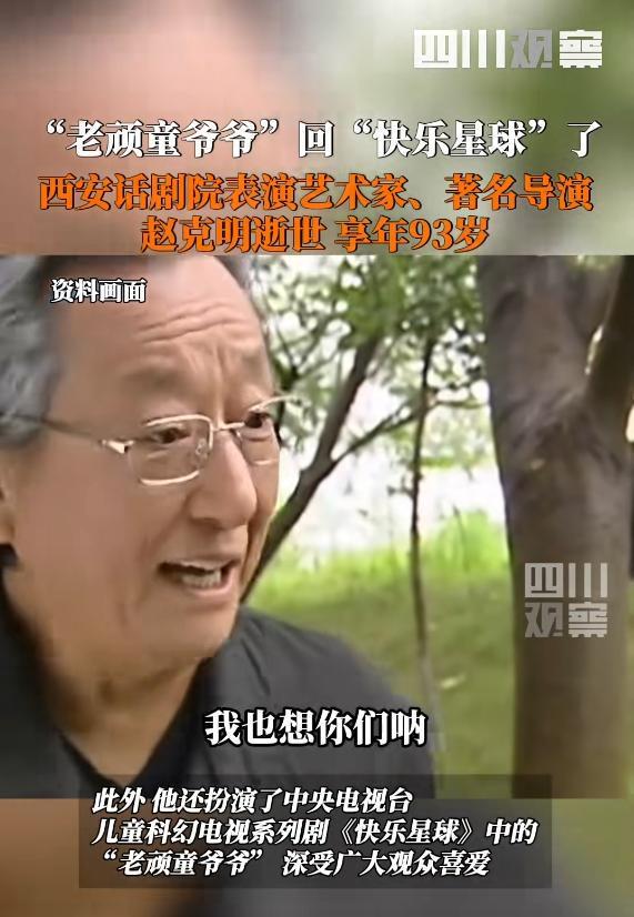 2025年10月4日,不幸的消息传来,根据西安话剧院发布的消息,赵克明因病去世,享年93岁。