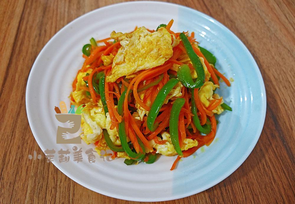2、另外搭配一点尖椒,也切成细条的形状。两枚鸡蛋在碗里打散。