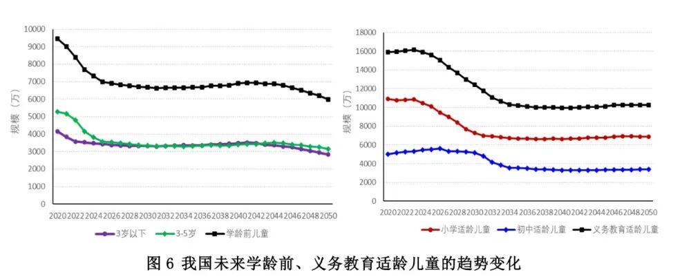 她指出,未来三十年内,我国学龄前和义务教育适龄人口规模将呈现阶段性下降,具体来看: