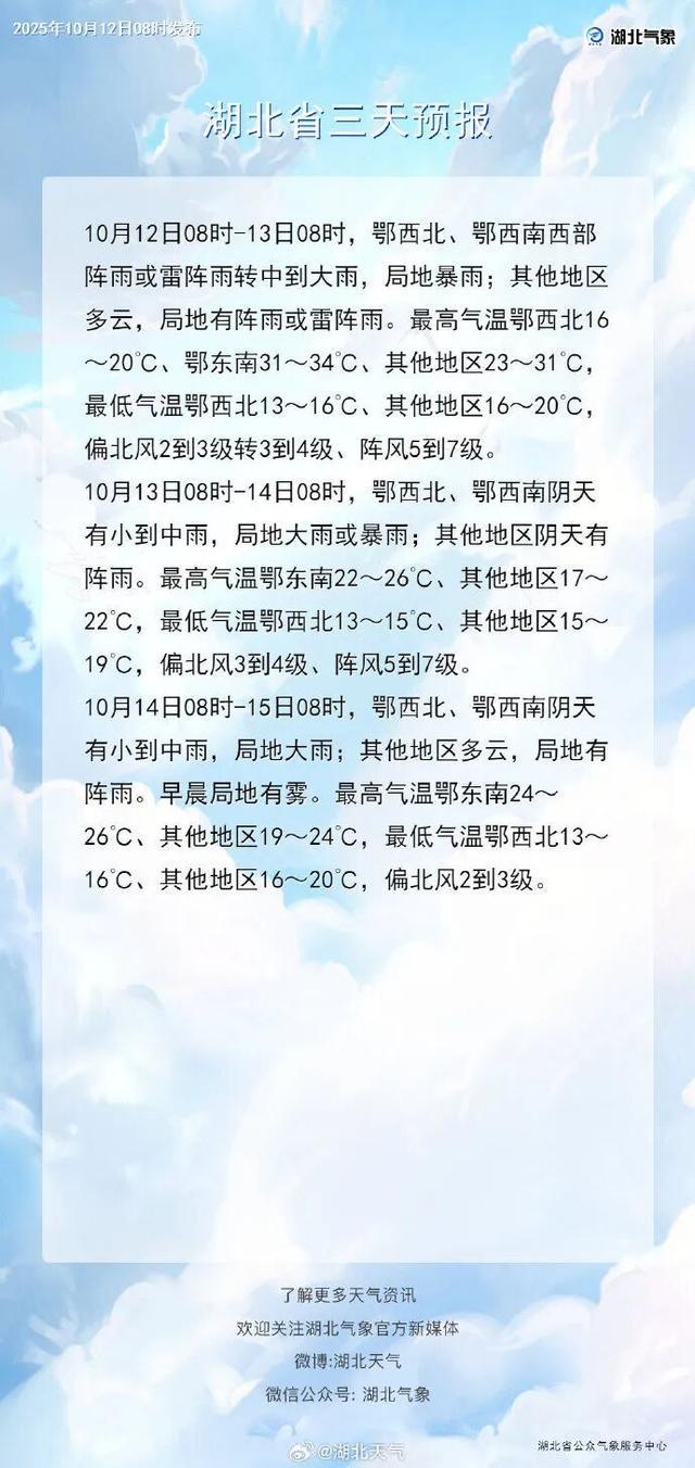 武汉明日最高气温骤降至19℃,刷新立秋后新低