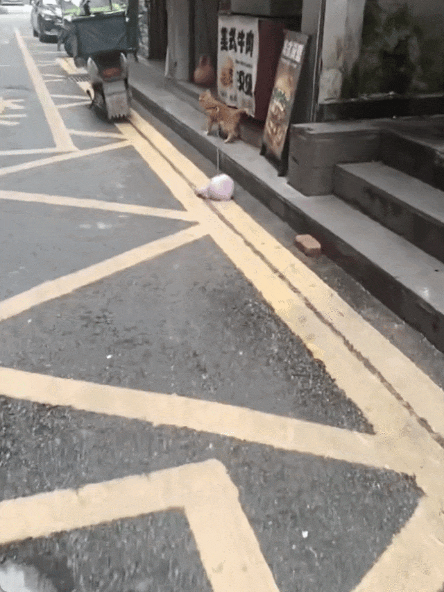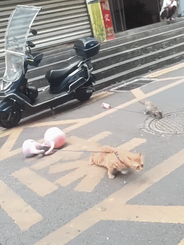 本以为壶铃够重,能把大橘“固定”在店里,没成想她还是低估了小猫对自由的渴望。大橘在店里“卧薪尝胆”,不知道偷偷练了多久“拉重物技巧”,终于在一个天气不错的白天,趁着店里没人注意,拖着沉甸甸的壶铃就往店外冲!