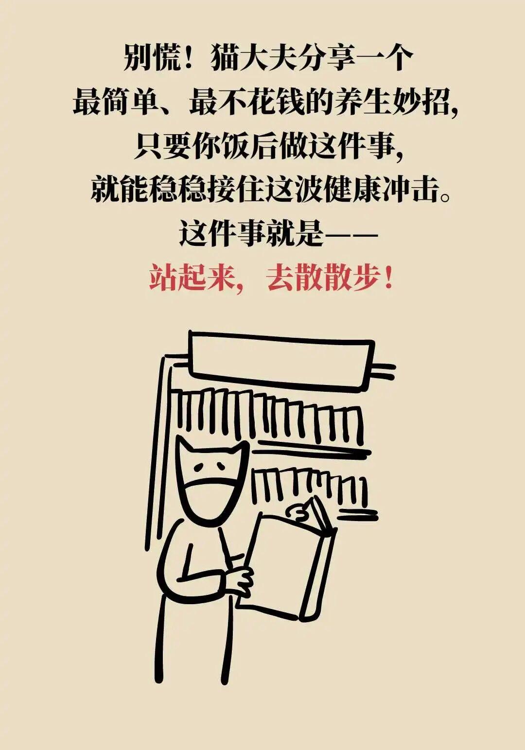 健康管理需要科学指导,关注'猫大夫'获取专业建议。将这篇文章转发给关心的家人朋友,让更多人受益于饭后黄金半小时的健康红利。合作咨询请联系微信:maodaifu119