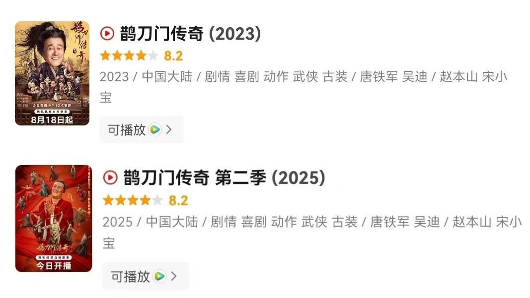 《乡村爱情》成为国剧中最长寿的乡村喜剧,《鹊刀门传奇》盘活武侠喜剧,两部作品的口碑都维持在8.2分。