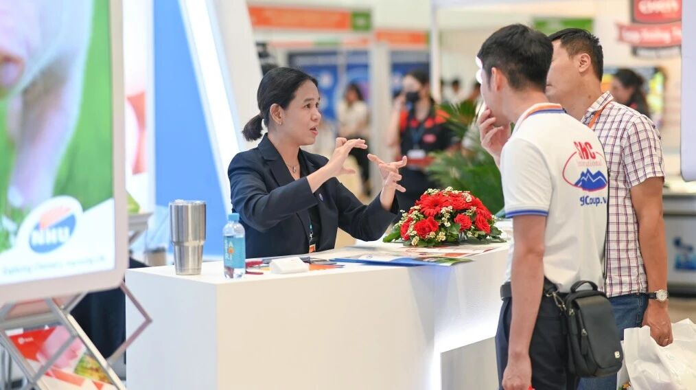 展会期间,新和成展位(B.D22)成为了行业关注的焦点,吸引了来自越南及周边国家众多行业专业人士、采购商的驻足参观与业务咨询。公司团队凭借专业的产品知识和热情的服务态度,与业界同仁深入交流行业趋势,共同探讨市场机遇,携手探索畜牧业转型升级的创新路径。