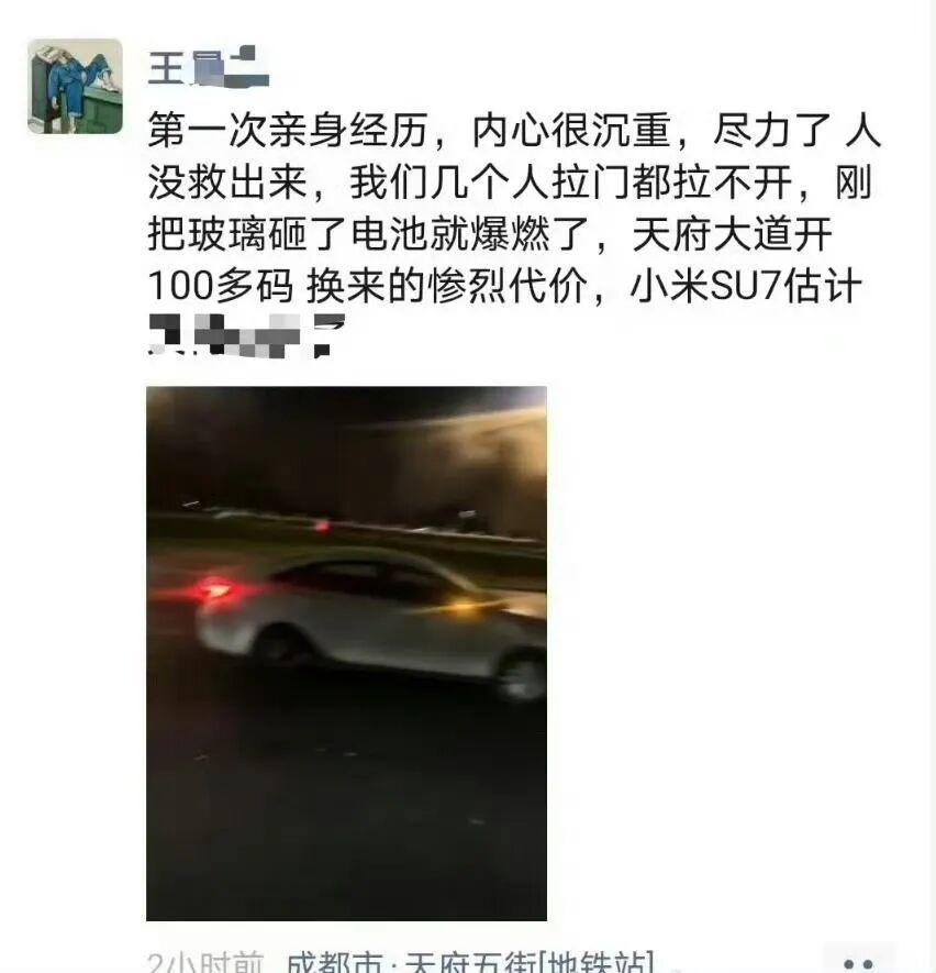 还记得3月底吗?湖北三个人开着SU7去安徽考试,在高速上撞车起火,三人全部遇难。