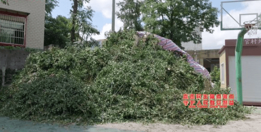 倒下来的这株古树已被清理,它的树枝、树叶、树干堆放在一旁