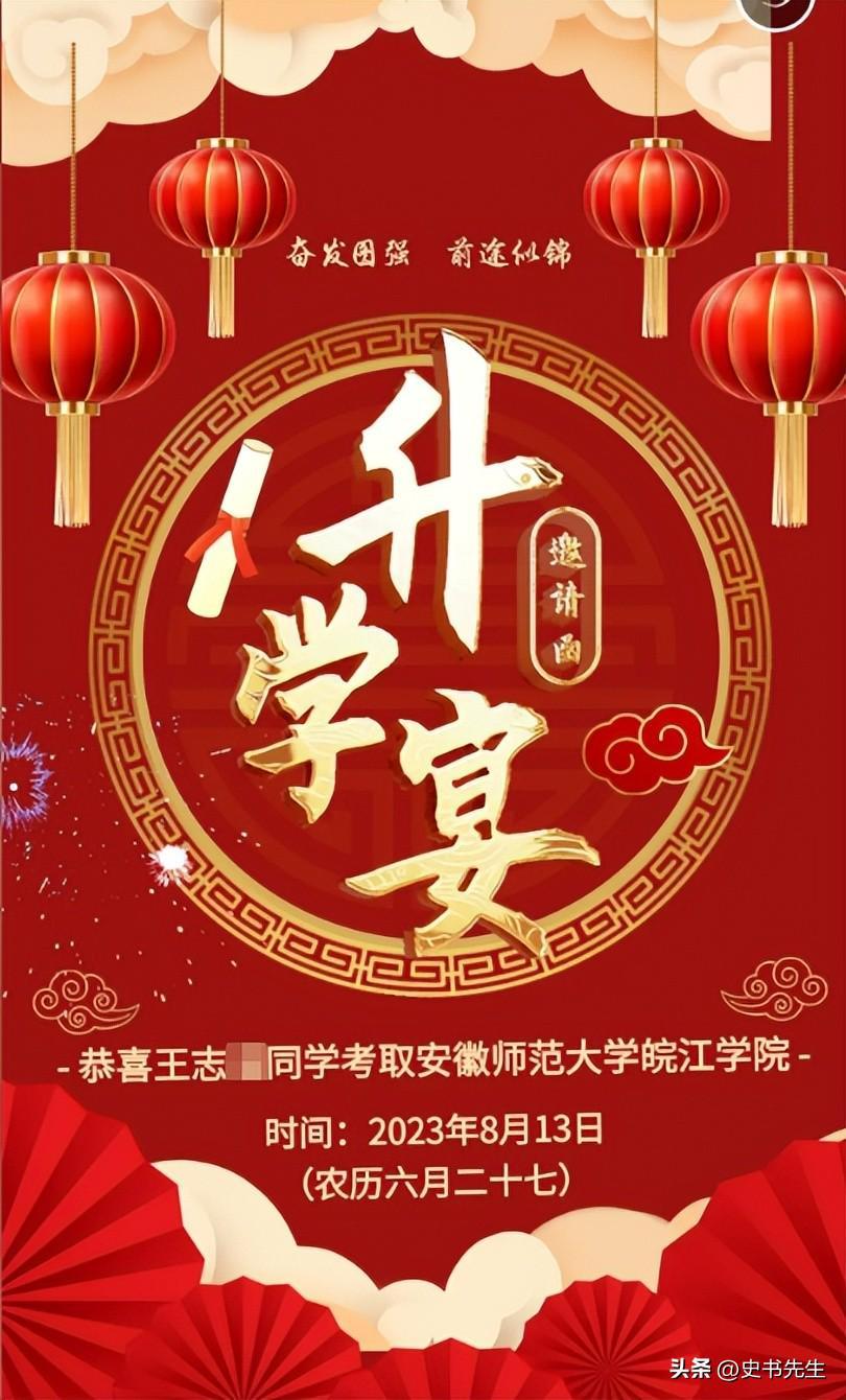 家里还有两个儿子,都非常的优秀,在2023年的时候,大儿子就被安徽师范大学所录取,家里还欣喜的为他举办的升学宴。
