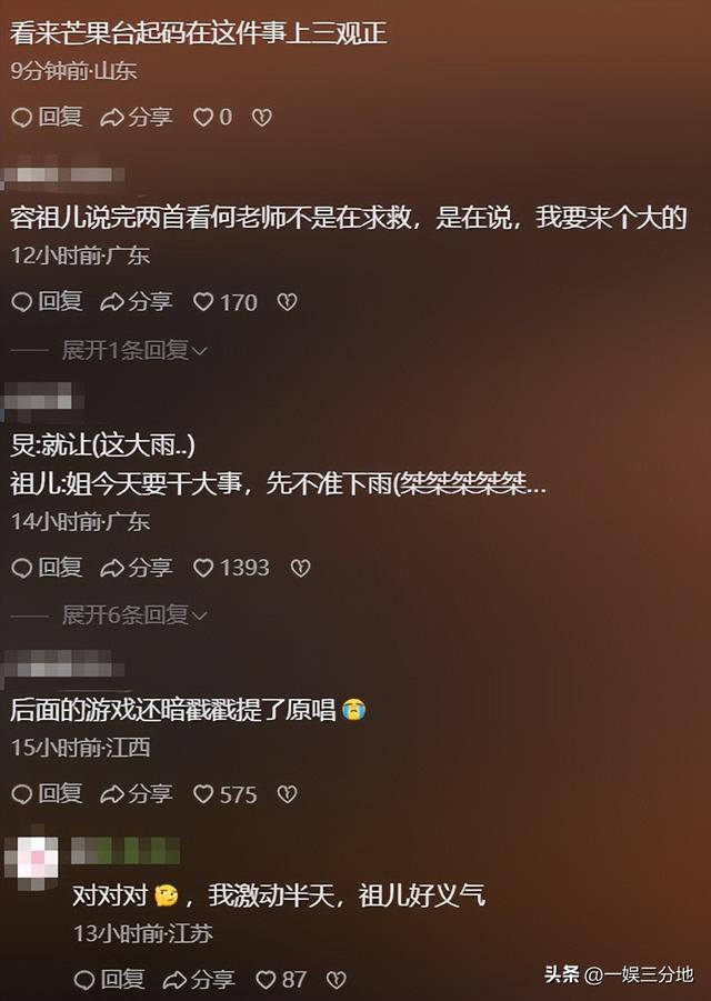 甚至何炅在旁边还提示了《就让这大雨全都落下》,容祖儿还是坚持力挺好友汪苏泷。