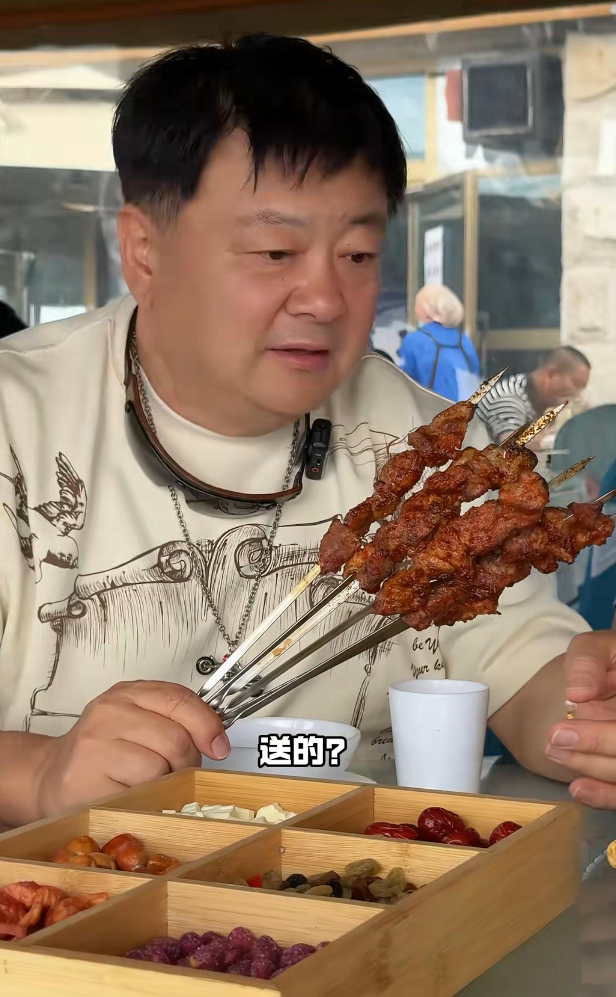 有趣的是,在视频中李彬强烈要求洪剑涛请吃饭。当时他们正在赛里木湖景区游玩,都想尝一尝当地的特色美食,于是开始点餐。