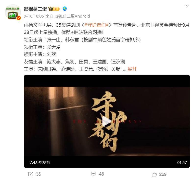 根据最新排播消息,由张一山、韩东君主演的谍战剧《守护者们》,很有可能会在9月23日登陆北京卫视开播。届时,线上平台优酷和咪咕也会同步跟进。
