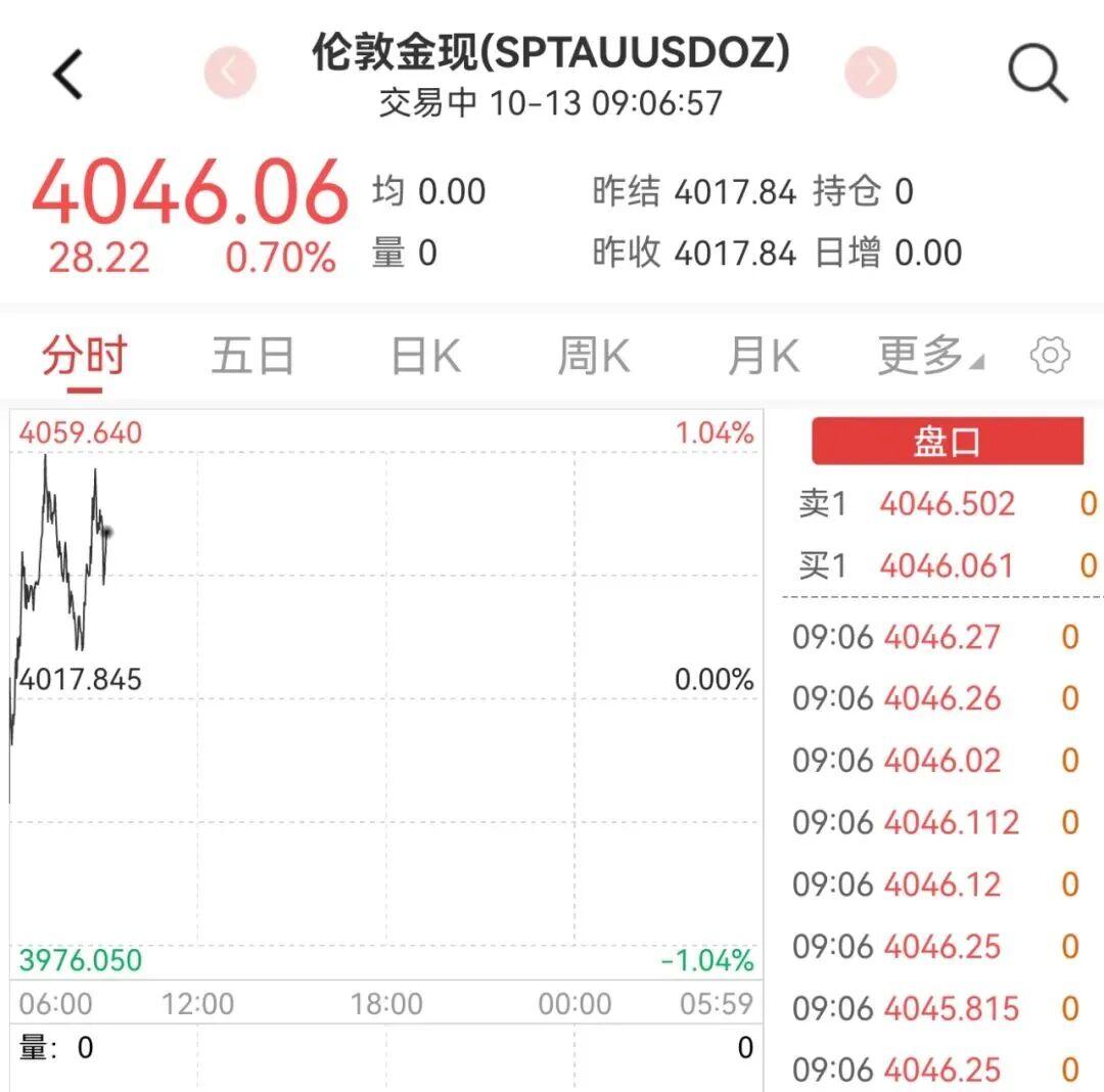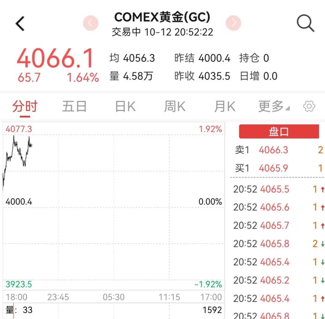 截至发稿时,现货黄金价格报4046.06美元/盎司,COMEX黄金价格报4066.1美元/盎司,显示出黄金市场的强劲势头。