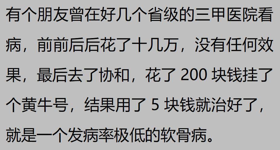 还有网友分享了自己的亲身经历:小时候指头关节肿大,在县城看了几年都没治好。后来去西安,仅用2块钱一瓶的药就治好了。这一经历让网友深刻体会到了大医院和小医院之间的差距。