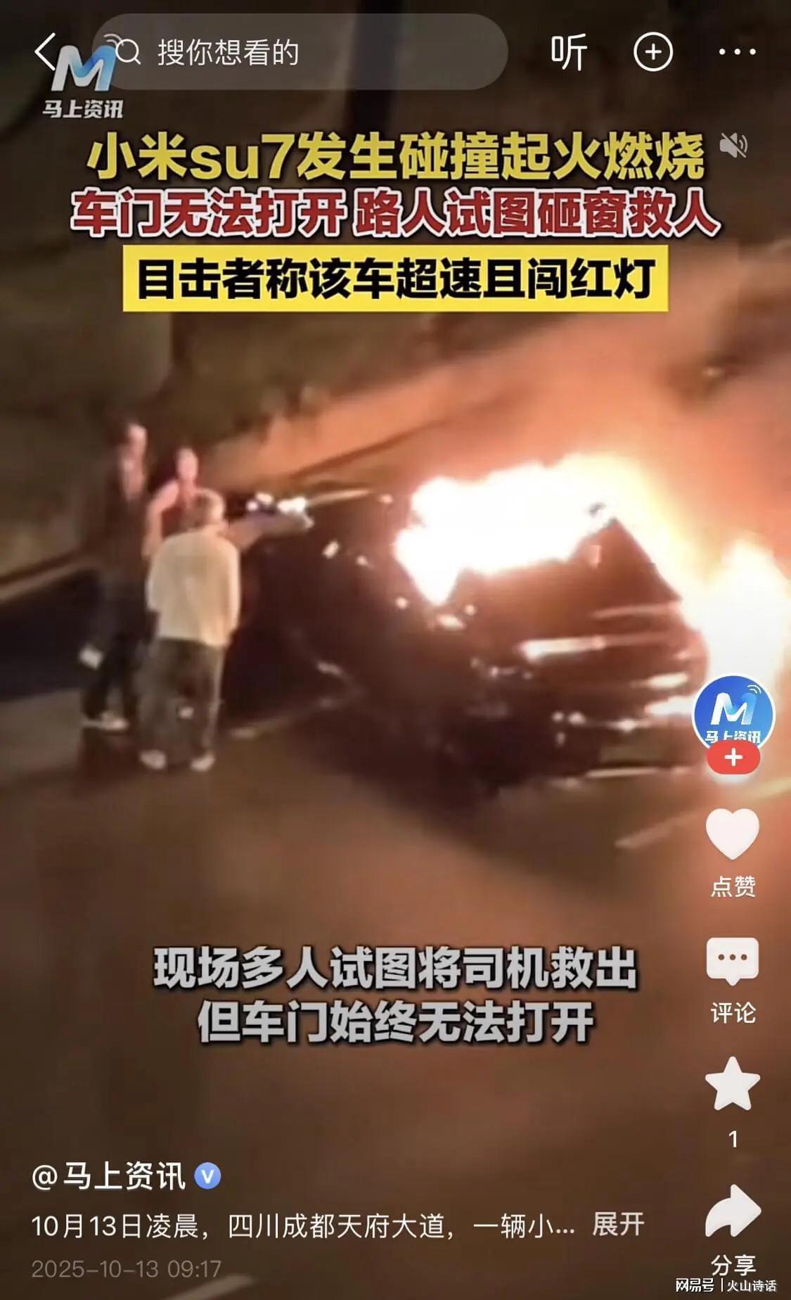 试问国内新能源汽车初创期间,谁能交出如此亮眼的业绩?所以问题就来了,一起车祸,带上了小米su7,就上了各大APP热榜了。没办法,人家小米汽车,流量大。