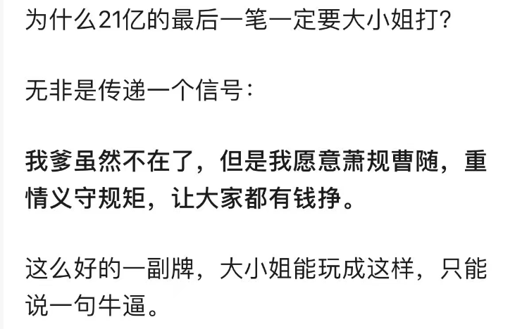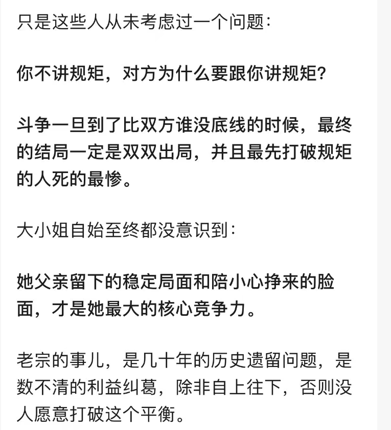网友们纷纷猜测宗大小姐的想法,认为她既想独占所有好处,又不愿与他人分享。这种贪婪的心态,最终打破了原有的平衡,成为了她取祸的根源。