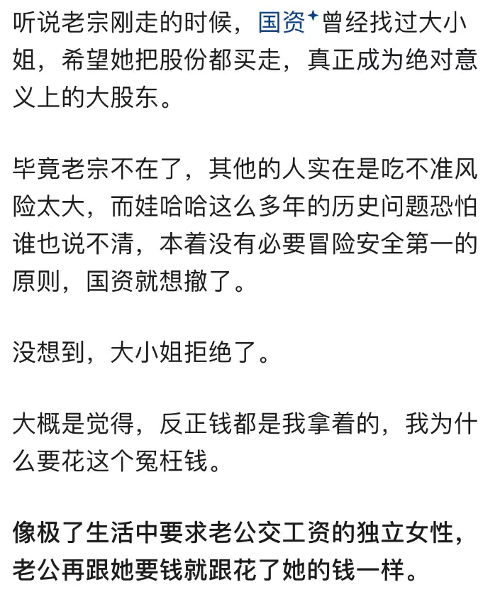 于是,才有了为宗大小姐接班的种种安排。然而,令人意想不到的是,宗大小姐的心气过高,竟然将这一切都搞砸了。