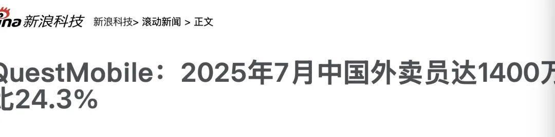 据最新数据显示,2025年7月,外卖员数量已达到1400万。其中,女性占比接近25%,即每四个人中就有一个是女性。而35岁以下的外卖员占比更是高达61.8%。这一数据反映了年轻人在灵活就业市场中的活跃程度。