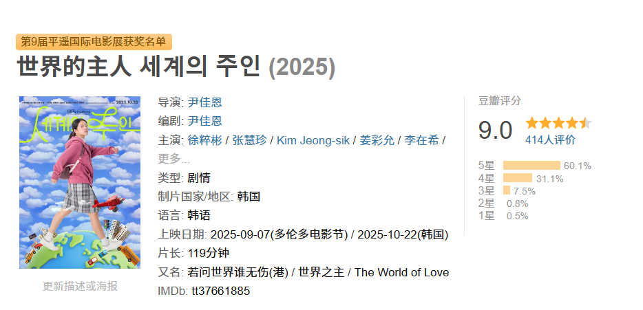 今年平遥国际影展上,一部名为《世界的主人》的韩国电影以豆瓣开分9.0的惊人成绩成为焦点,此前已被多位知名影评人列为年度必看爆款。
