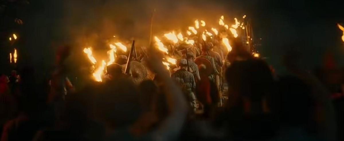 预告的开场,环境昏暗只有一丝微光,但预告的结尾处,却是漫天霞光,也在预示着长征终将胜利,我军走向光明的结局。