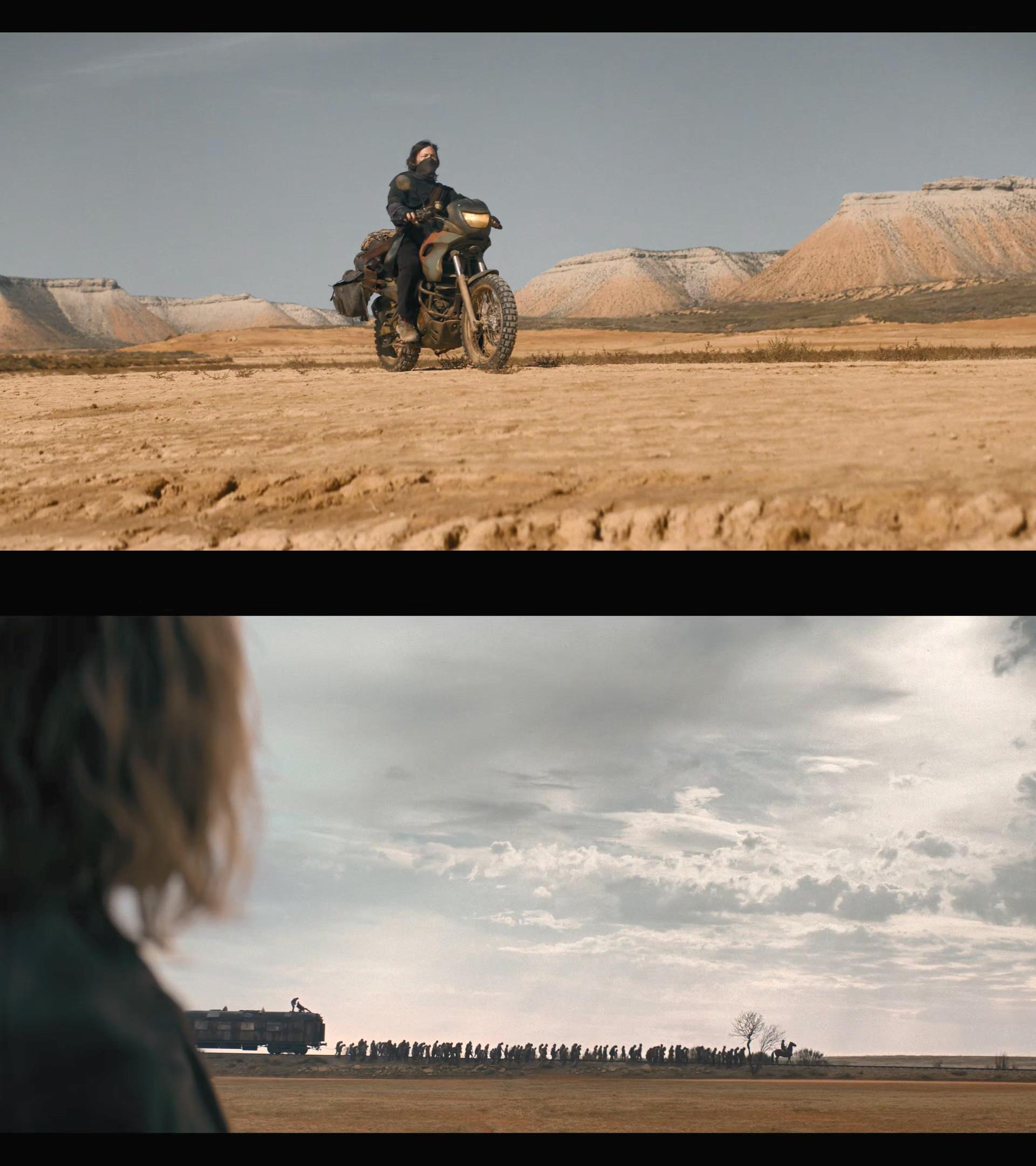 这景色、这场面,诺曼直言是“《疯狂的麦克斯》版的意大利西部片”,废土风+西部片,齐活了。