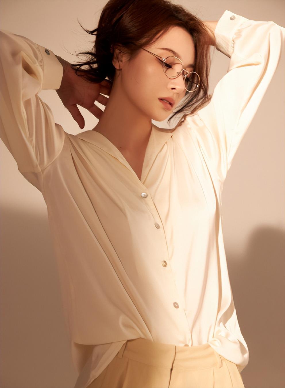 她身上最吸引人的一点,就是优雅的气度,身上自带书卷气,而且五官清秀耐看,不依赖医美,素颜也有种高级感,而且随着岁月沉淀,气质越发显得自信从容,充满了故事感。