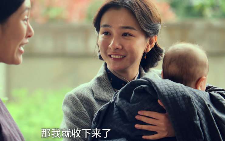 在剧中,阿菊是朱枫的养女,出场时刚生完孩子不久,身上还有一种温柔的母性光辉,接到养母时笑得格外开心,清透明亮的眼神让人瞬间升起了好感。