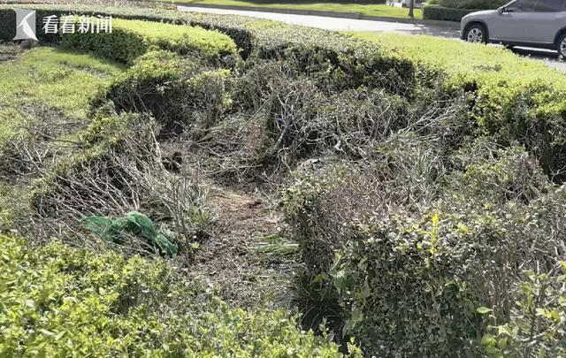 事发路段绿化带被严重破坏,现场一片狼藉。