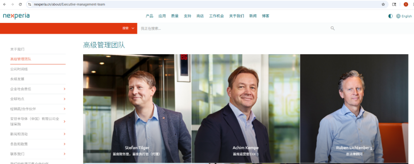 近日,记者通过安世半导体官网发现,其高级管理团队页面已发生显著调整。原CEO张学政的照片及职务信息被移除,现任首席财务官Stefan Tilger的职务新增“首席执行官(代理)”头衔。同时,首席法务官Ruben Lichtenberg的照片排序提前,与首席财务官Stefan Tilger、首席运营官Achim Kempe共同位列高管团队首行。