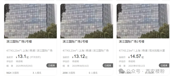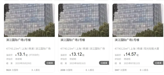 曾被誉为“房企黑马”的阳光城,近日迎来了其发展历程中的标志性陨落时刻。其位于上海杨浦滨江的总部大楼“滨江国际广场1号楼”(原名阳光控股大厦),在历经四次流拍后,最终以13.1亿元的价格成交。