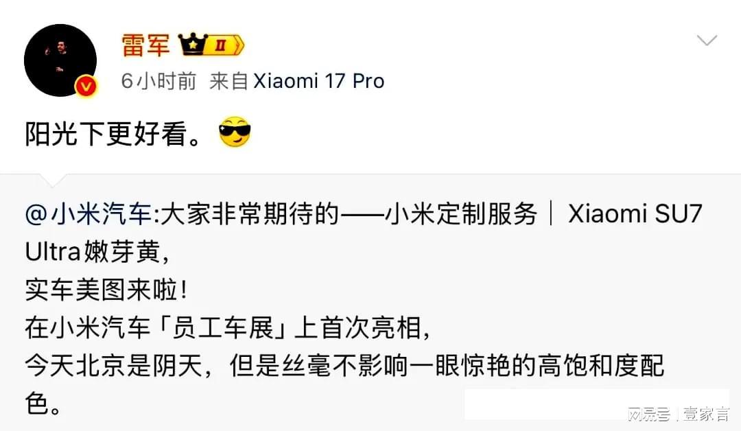 值得注意的是,截至10月13日,小米汽车官方尚未就成都事故发布声明或回应。雷军也未就此事发声,但在14日转发了两条小米汽车宣传博文,其中一条评论称“阳光下更好看”,同时还涉及小米17手机销售内容。小米集团合伙人、总裁卢伟冰也于14日早7:07分发微博称“本周行业越来越热闹,也会越来越忙”。