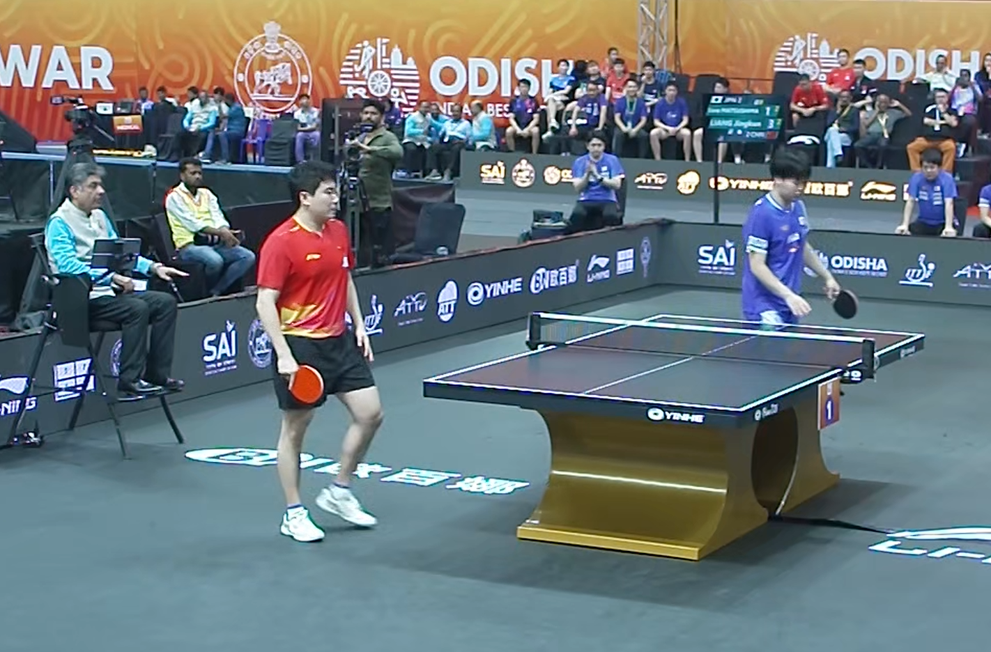首局比赛,松岛辉空正手发挥出色,双方战至6平。但随后梁靖崑失误增多,局末以7-9落后。最终,梁靖崑对长球处理不当,以8-11丢掉首局。