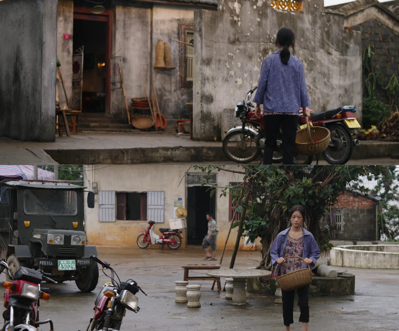 在郭阿弟“借种”的荒唐桥段中,李庚希的表演与角色心境明显脱节。前一场戏中,吴细妹在祭奠阿婆时流露出“熬不住”的绝望,暗示其心理已逐渐扭曲。然而,当她回到家中,面对两辆摩托车和屋内对话时,快步走向屋内的动作与对郭阿弟暴力的畏惧心理不符。