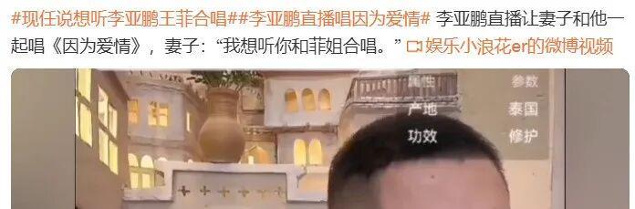 当时鹏哥在直播间里唱起《因为爱情》,他还想让身边的海哈金喜和他一起唱,但后者则是说“我想听你和菲姐合唱”。