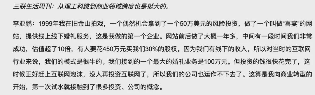 鹏哥是那种演戏有点天赋,但十分热衷于做自己没有天赋的事的人。或者说,他在自己世界里的排序是“理工科大于搞商业大于做演员”。