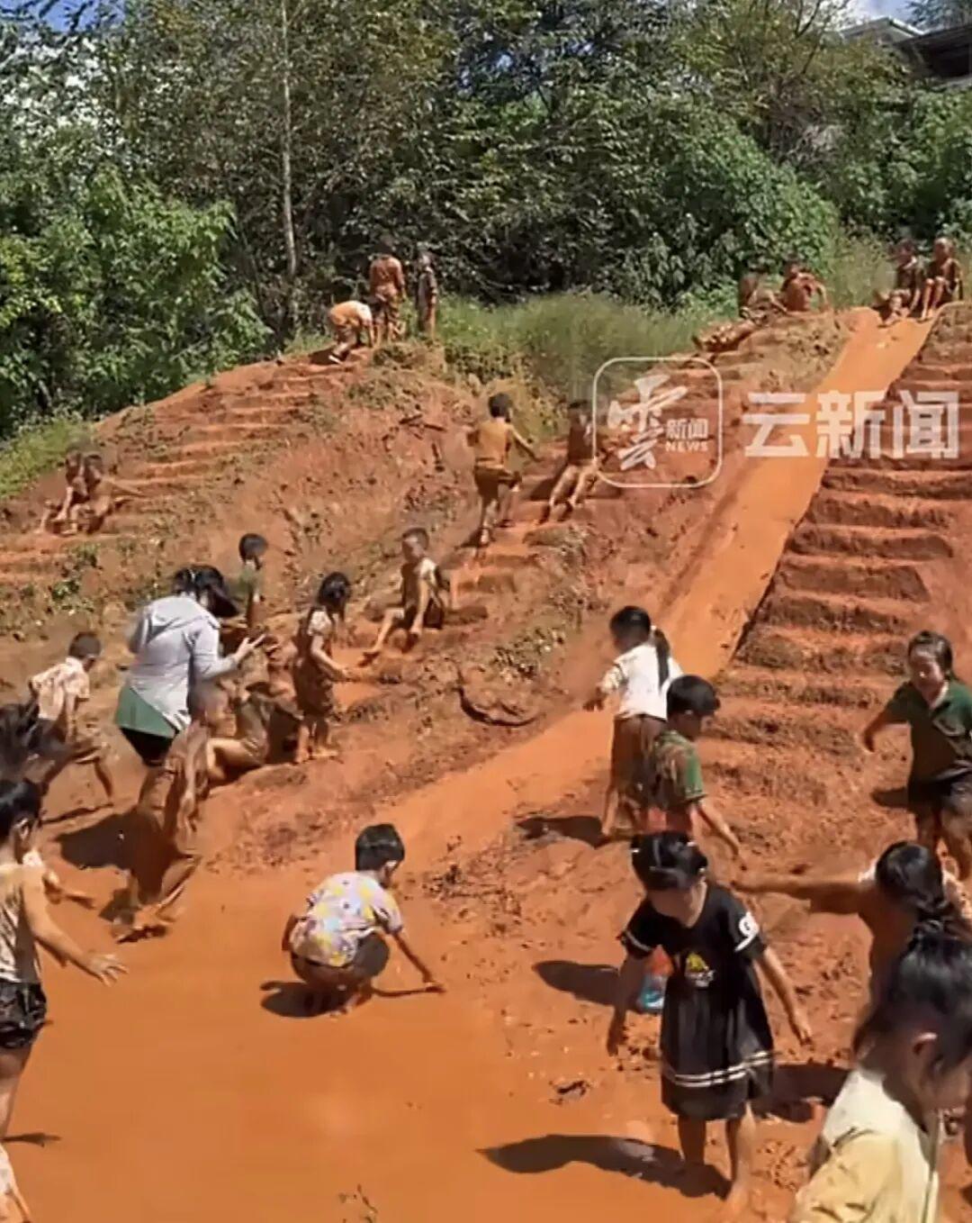 近日,云南临沧一幼儿园的自然教育课上,小朋友们泥地打滚、拿鱼摸虾欢乐满满。
