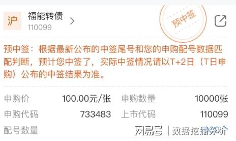 接近52万个中签号码,这一数字意味着不少投资者都幸运地中到了一签,堪称“阳光普照奖”。福能转债之所以备受关注,不仅因为其中签机会多,更因为其背后隐藏的巨大投资价值。当前,福能转债对应的正股股价为9.87元,而转股价仅为9.84元,转股价值高达100.30,显示出较高的投资价值。根据以往相似可转债的估值以及福能转债目前的转股价值,市场普遍预估其打新收益将达到300元左右,堪称一枚“铂金级肉签”。对于股民而言,中签福能转债无疑等同于“中奖”,那么,你是否也成为了这个幸运儿呢?